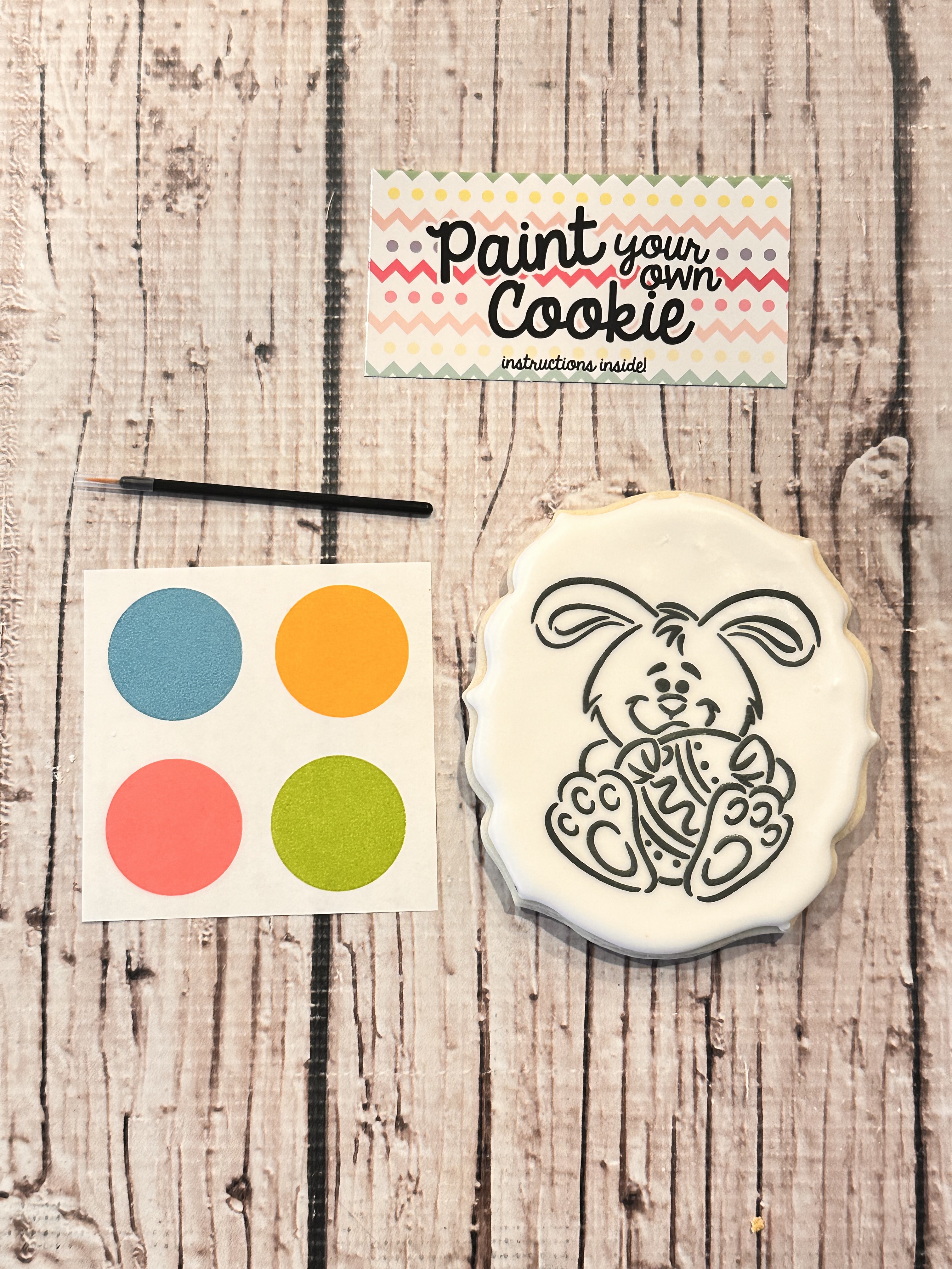 Paint Your Own cookie – Easter Bunny with an Egg comes cookie, paint palette, mini paint brush and instructions