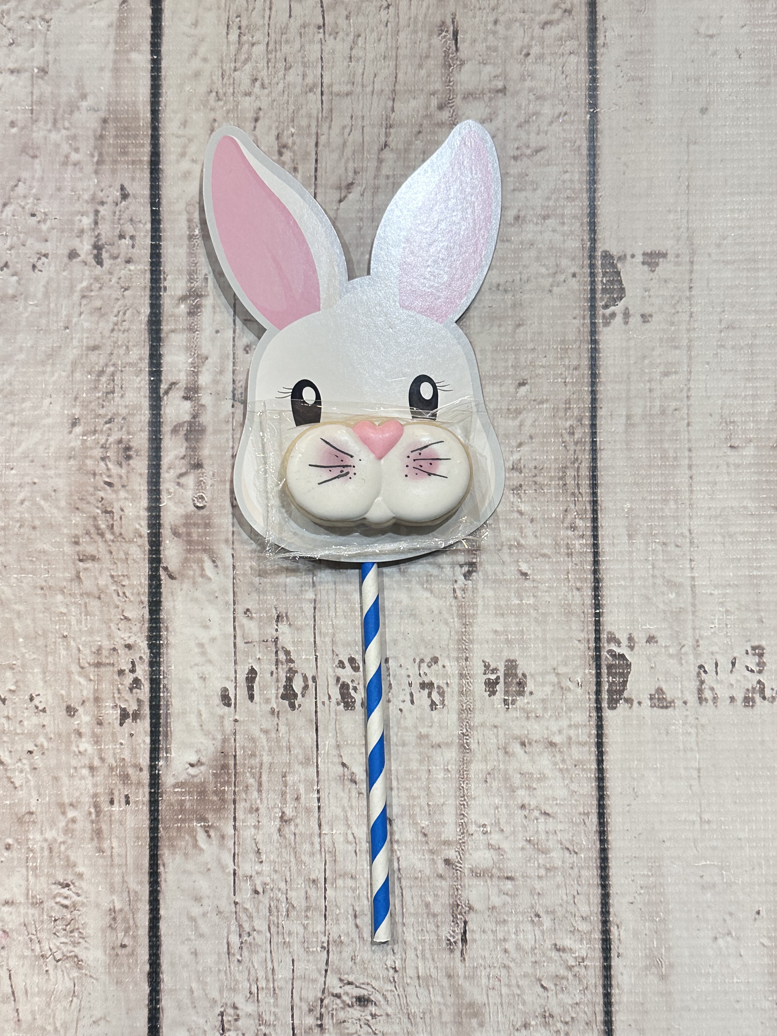 Easter Bunny card with one mini cookie on a stick. Great for individual gift or an added item for their Easter Basket.