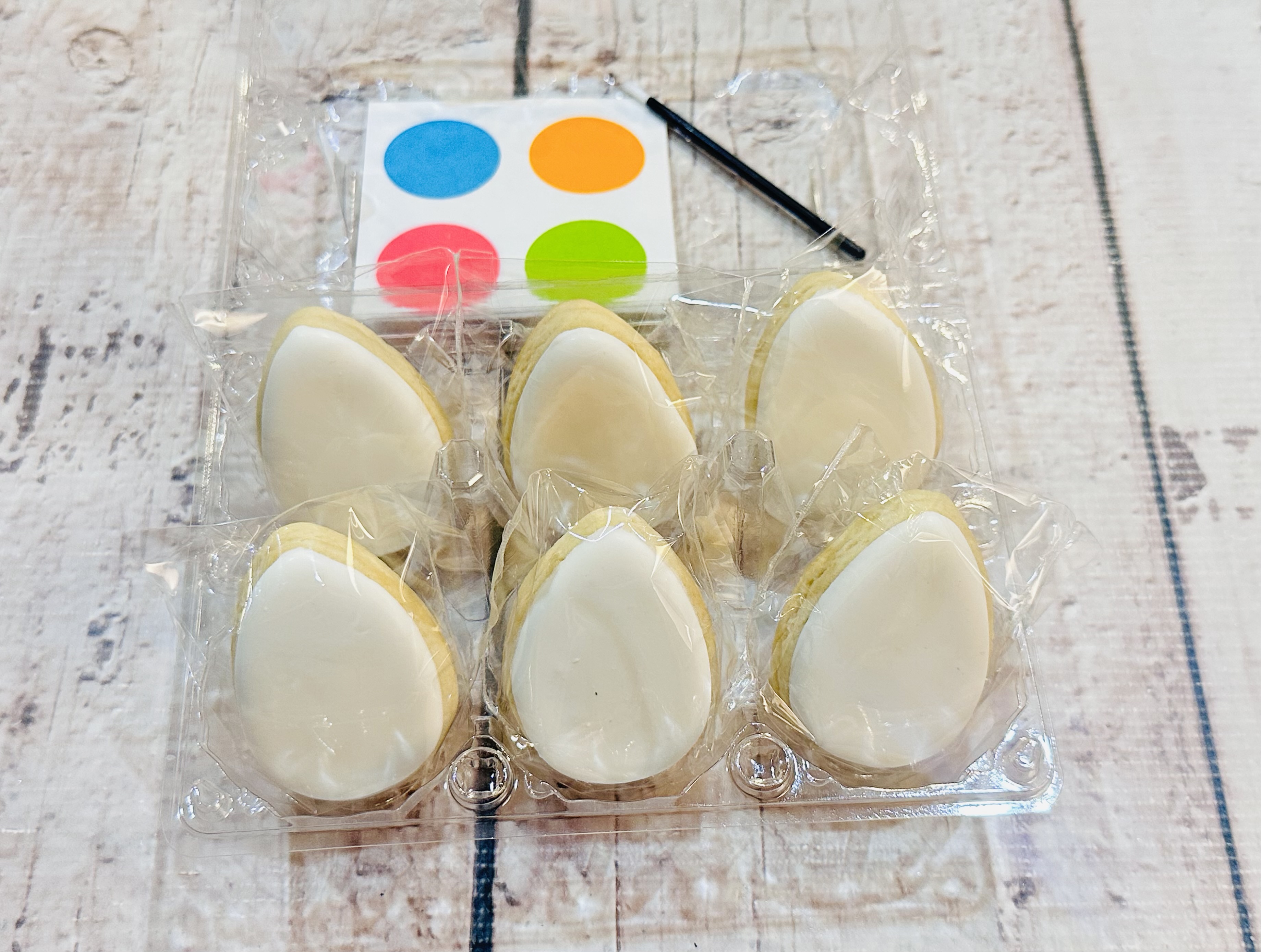 Paint Your Own Easter mini cookies – Comes with white iced Easter egg cookies, edible paint palette, mini paint brush and instructions.