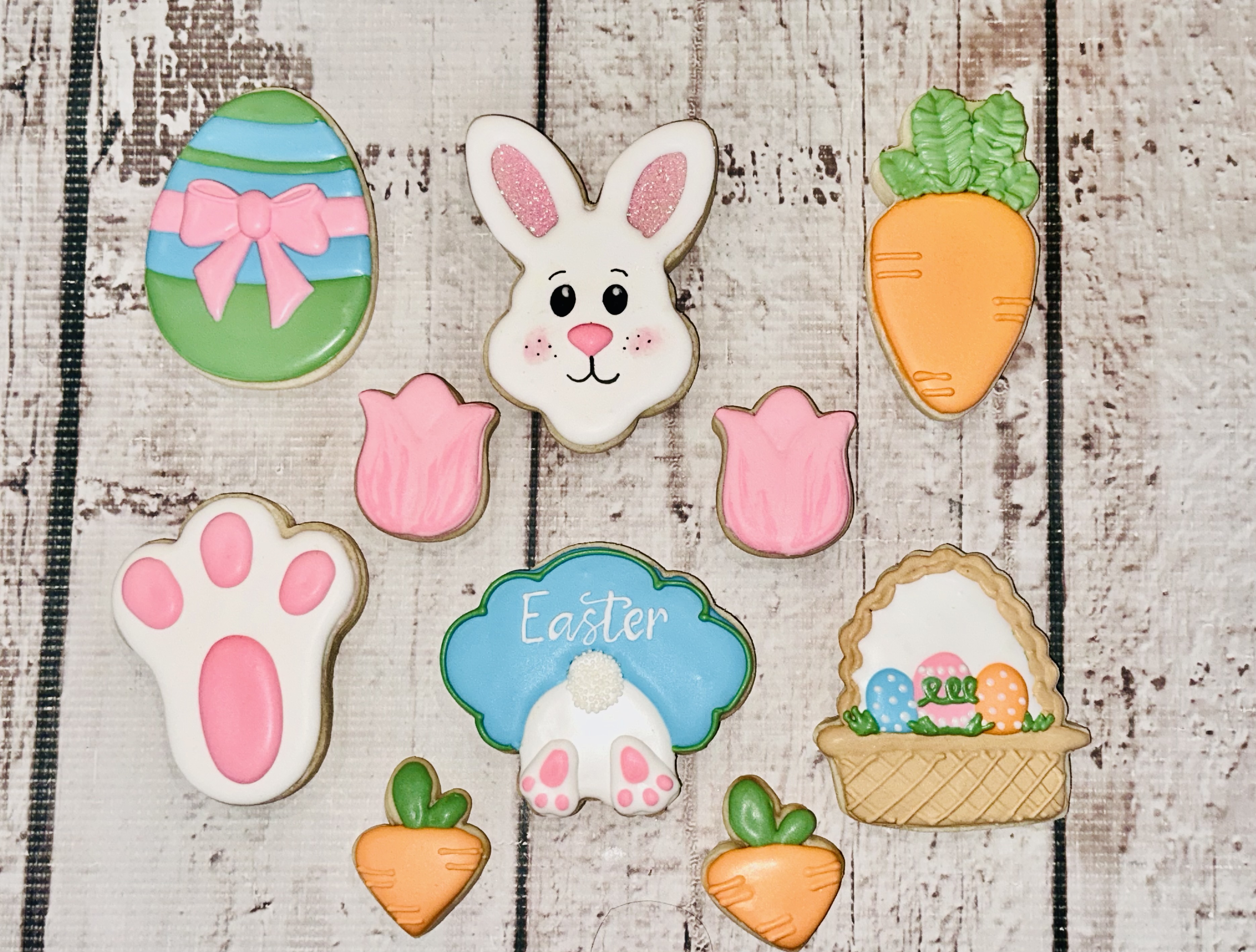 Easter cookie set comes with 6 large size cookies and 4 mini cookies. Great to bring to your Easter celebration.