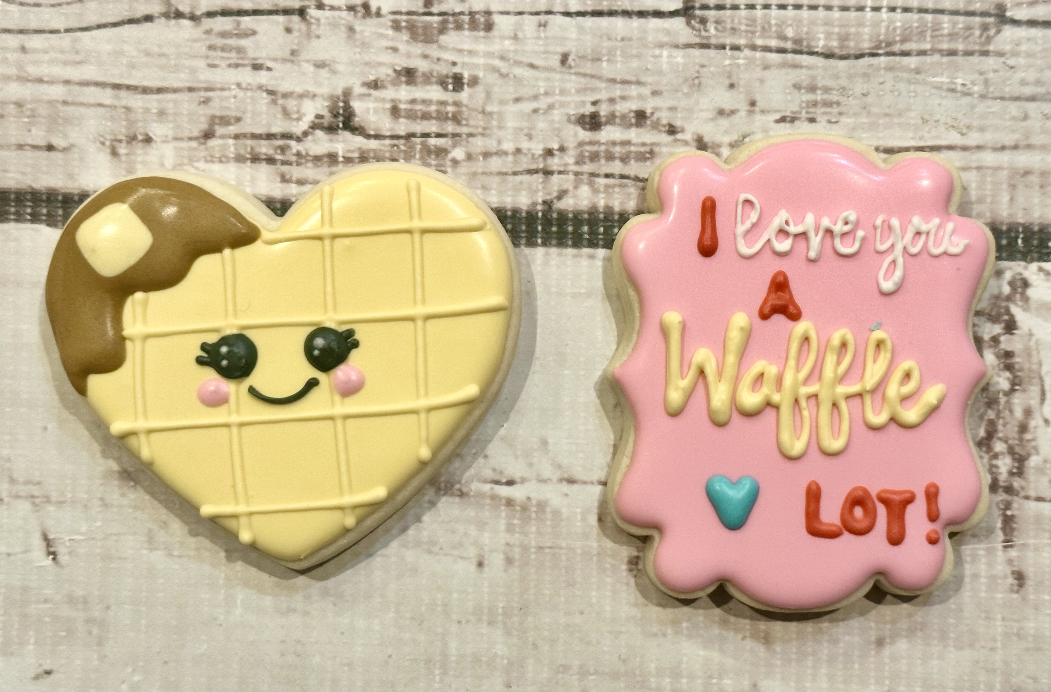 2 cookie box set: Heart Waffle and “I Love You a Waffle Lot” plaque cookie